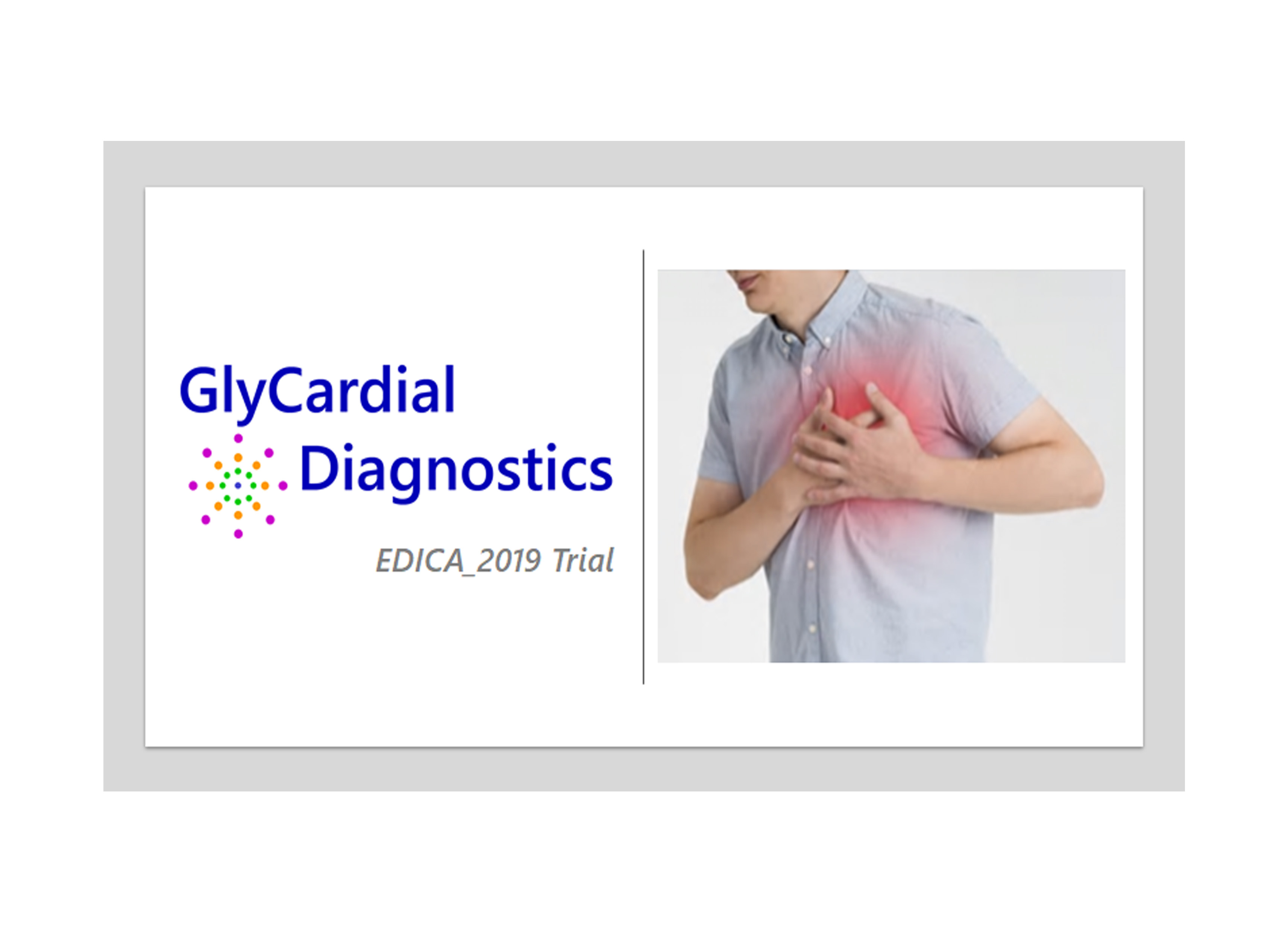 GlyCardial Diagnostics today announces the enrolment of the first two patients in the EDICA trial. These patients have been included at the Santa Creu i Sant Pau Hospital in Barcelona by the team headed by Dr. Alessandro Sionis and at the La Paz University Hospital in Madrid by the team headed by Dr. José Luis López-Sendón.